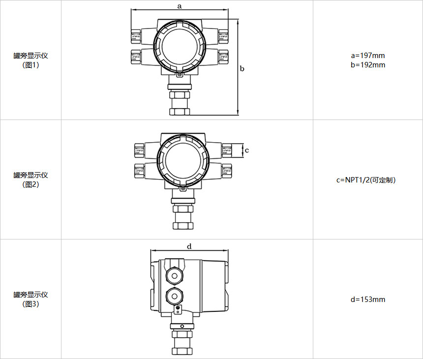 可選配多點平均溫度計、壓力變送器等溫度、壓力儀表實現(xiàn)溫度、壓力值的罐下顯示